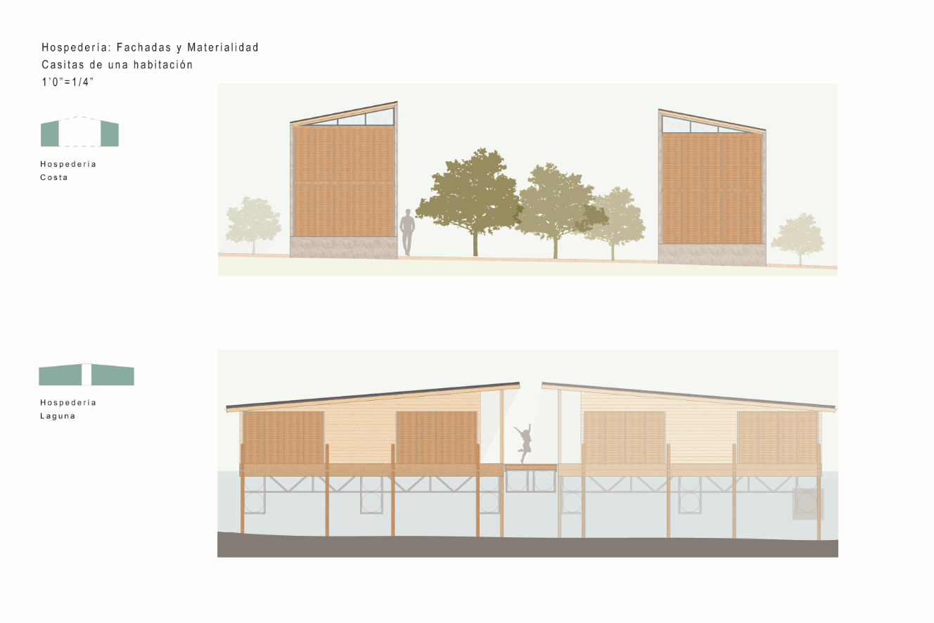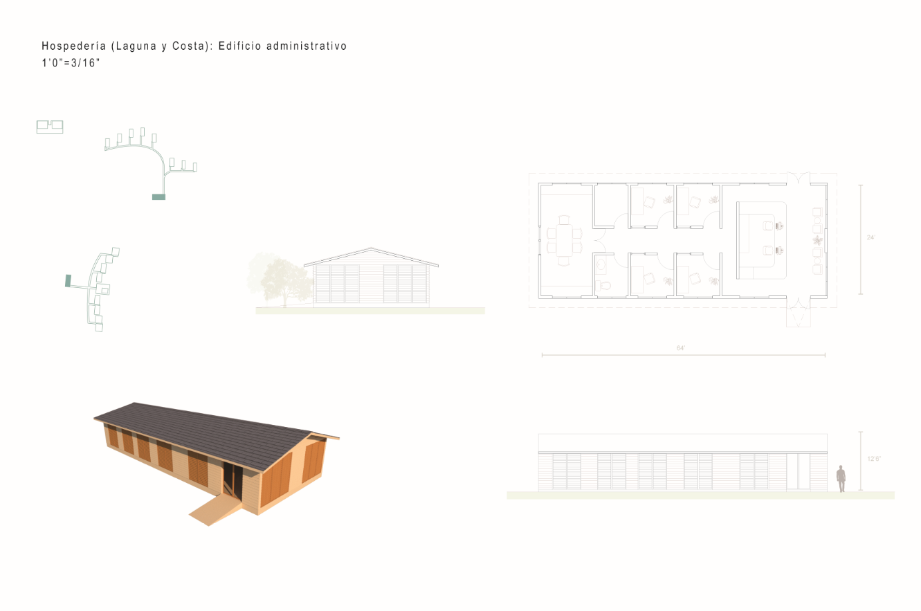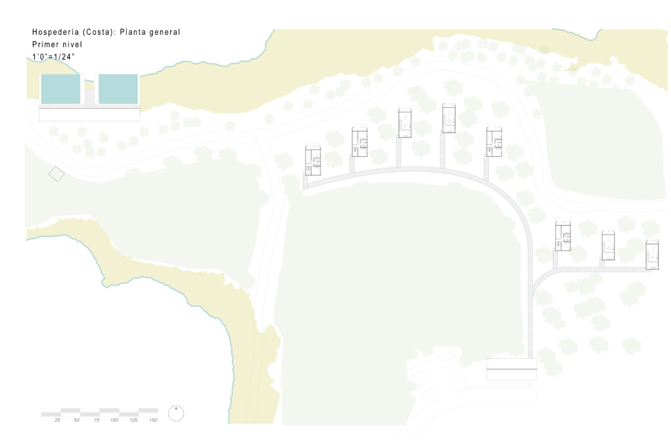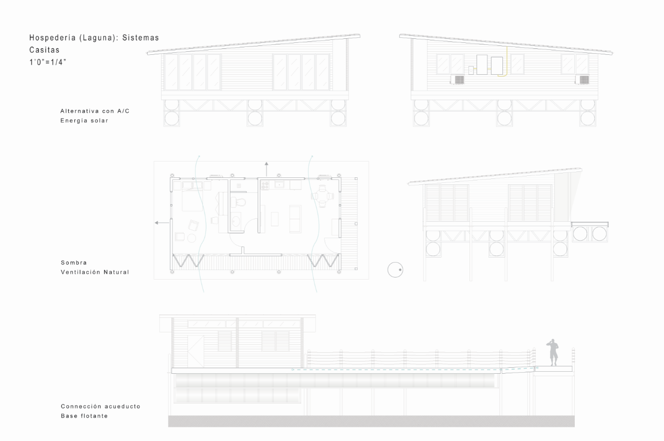 With the intention of proposing spaces that would entice tourists to visit the coastal town of Loíza in Puerto Rico and explore its natural wonders, I designed two short-term lodging projects. These Casitas can be rented out to tourists who want to experience nature up-close, and are accompanied by natural pools. The first project sits deep in the Piñones Mangrove Forest, where wooden tiny houses are floating anchored to a dock at the Piñones Lagoon, where visitors can kayak right from their front deck. The second project is located right on the north coast in Punta Maldonado, where minimalist concrete two level houses overlook the ocean, and a pool area is found right on the water.