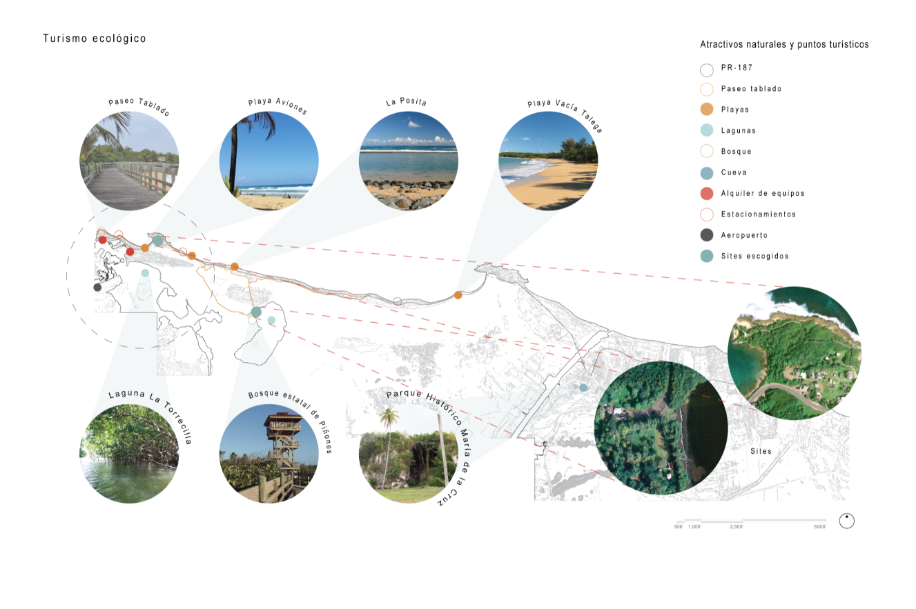 Ecological tourism spots in Loíza and the sites for the projects.